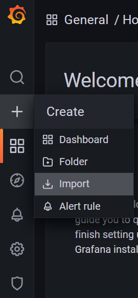 Langkah selanjutnya adalah merancang layout dashboard. Agar jauh lebih praktis, kita gunakan saja dashboard yang tersedia di internet. Caranya, silahkan navigasi ke menu Create lalu klik Import.